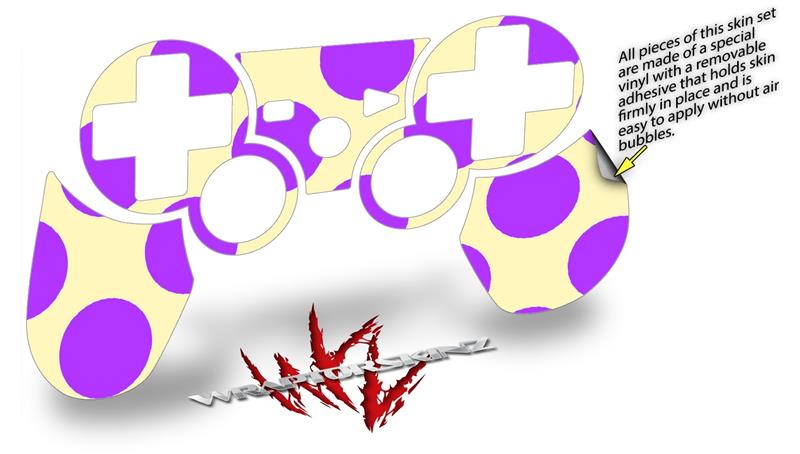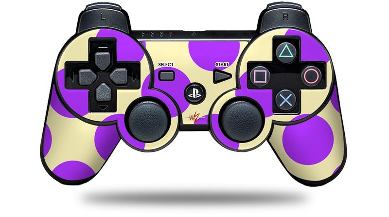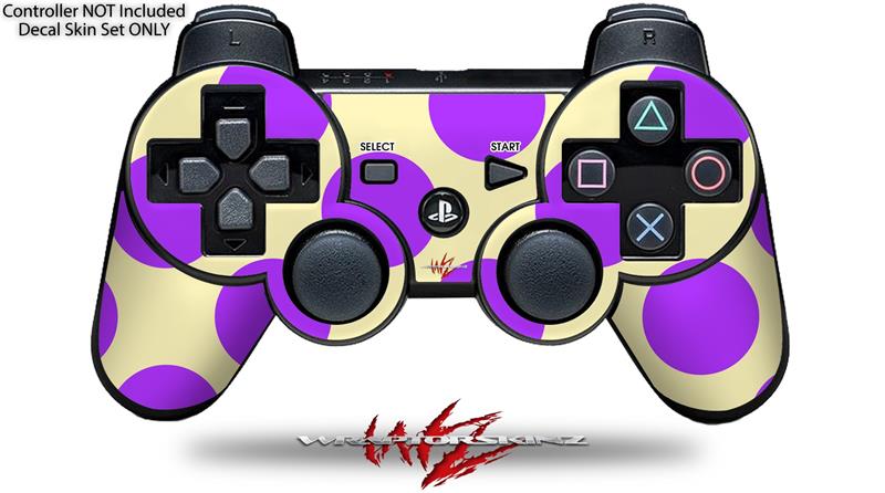 Sony PS3 Controller Decal Style Skin - Kearas Polka Dots Purple On Cream (CONTROLLER NOT INCLUDED)