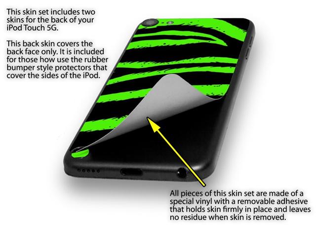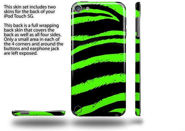 Zebra Green Decal Style Vinyl Skin - fits Apple iPod Touch 5G (IPOD NOT INCLUDED)