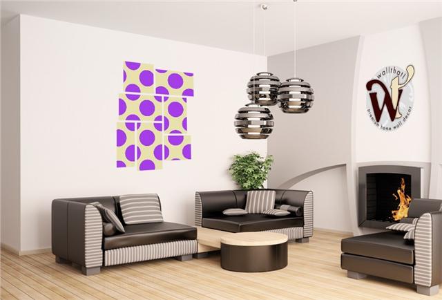 Kearas Polka Dots Purple On Cream - 7 Piece Fabric Peel and Stick Wall Skin Art (50x38 inches)