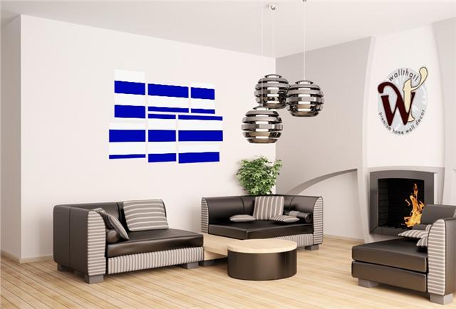 Psycho Stripes Blue and White - 7 Piece Fabric Peel and Stick Wall Skin Art (50x38 inches)