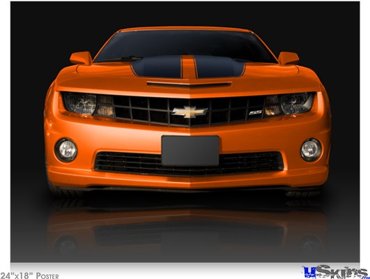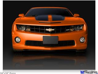 Poster 24"x18" - 2010 Chevy Camaro Orange - Black Stripes on Black