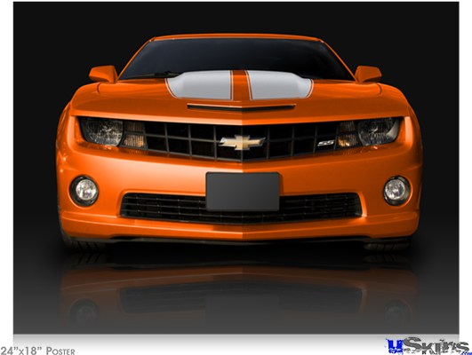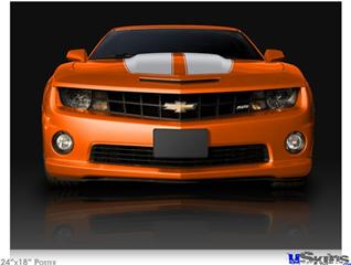 Poster 24"x18" - 2010 Chevy Camaro Orange - White Stripes on Black