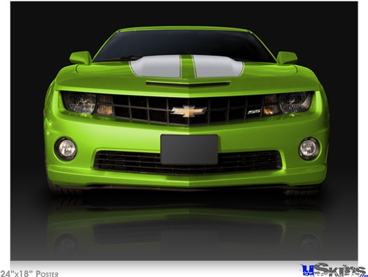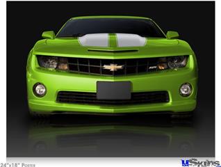 Poster 24"x18" - 2010 Chevy Camaro Green - White Stripes on Black