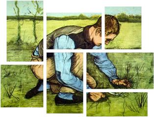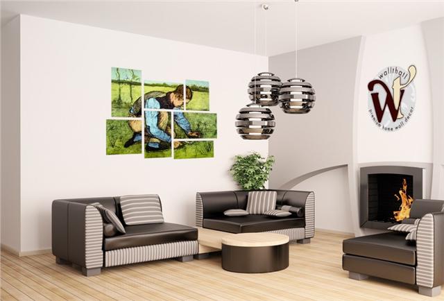 Vincent Van Gogh Cutting Grass - 7 Piece Fabric Peel and Stick Wall Skin Art (50x38 inches)