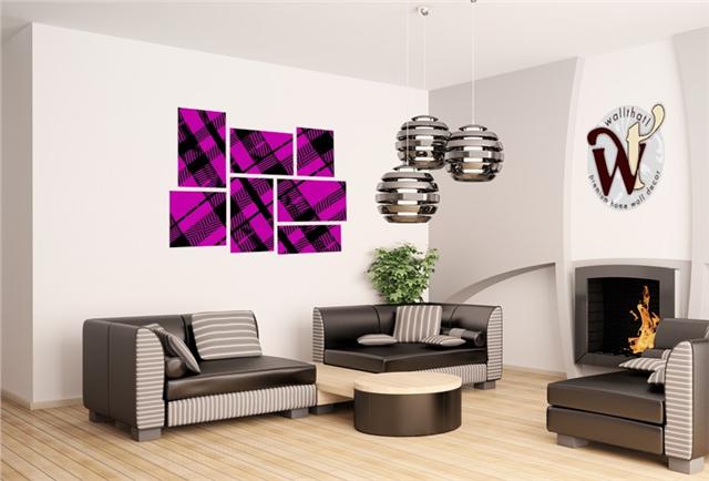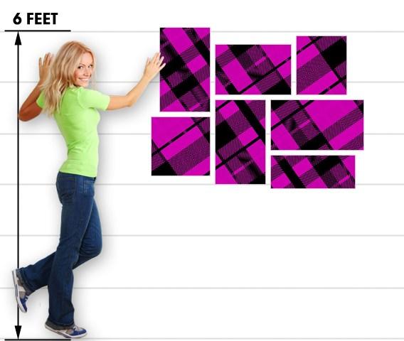 Pink Plaid - 7 Piece Fabric Peel and Stick Wall Skin Art (50x38 inches)