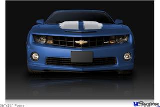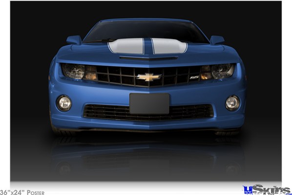 Poster 36"x24" - 2010 Chevy Camaro Aqua - White Stripes on Black
