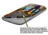 uSkins™ are self adhering vinyl skins that help prevent scratches and look great doing it. Unlike bulky silicon, plastic or metal cases and faceplates, uSkins are designed to be thin and very tough. uSkins are a composite of two layers of commercial grade materials. The bottom layer is a soft, flexible vinyl with a special removable adhesive that is easily positioned, applied without air bubbles, and effortlessly removed without leaving a sticky residue. Next we print the bottom layer with UV protected, fade resistant inks that deliver superb photo quality designs in vibrant colors. Finally we bond a professional grade laminate over the entire skin adding a glossy protective finish.