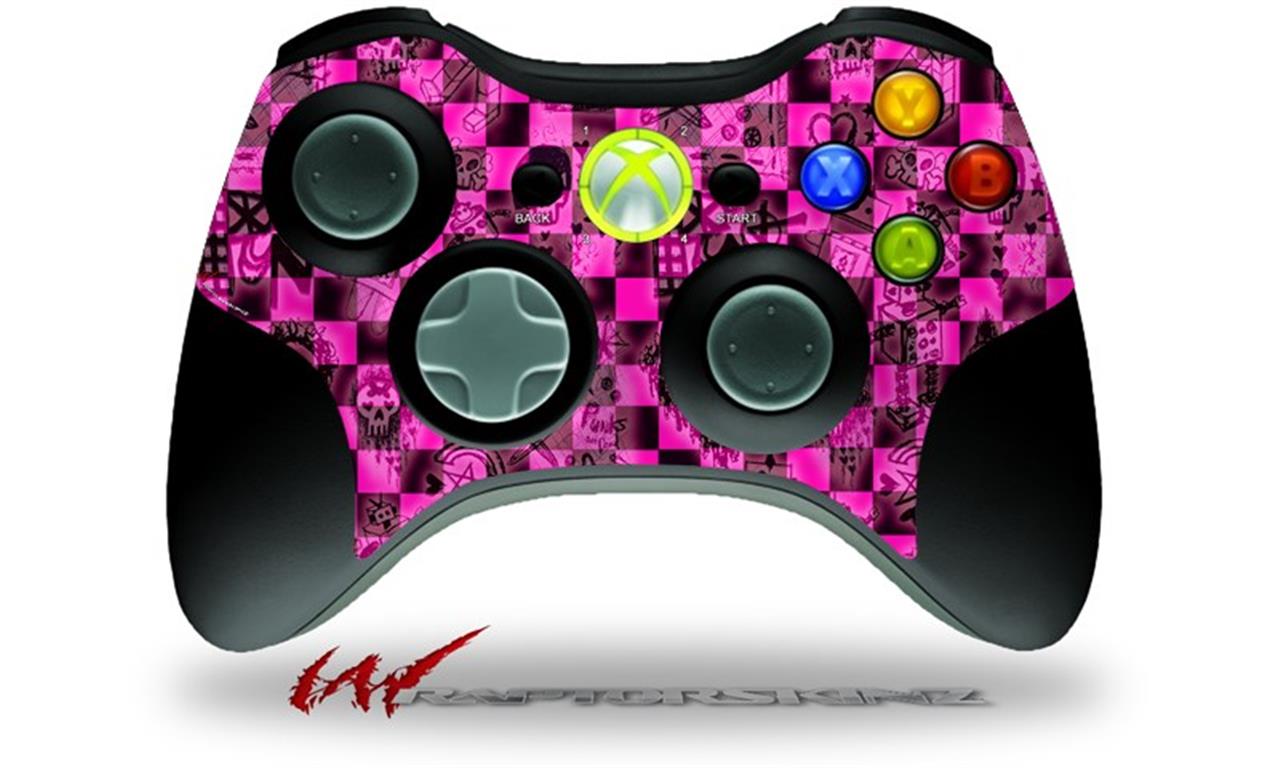XBOX 360 Wireless Controller Decal Style Skin - Pink Checkerboard Sketches (CONTROLLER NOT INCLUDED)
