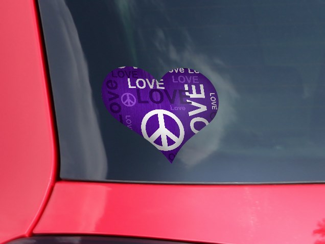 Love and Peace Purple - I Heart Love Car Window Decal 6.5 x 5.5 inches