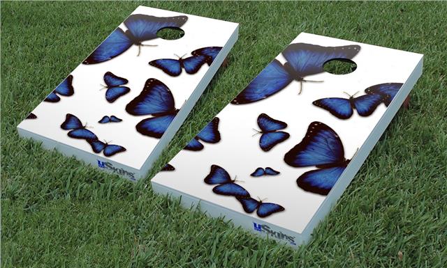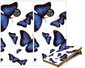 Cornhole Game Board Vinyl Skin Wrap Kit - Premium Laminated - Butterflies Blue fits 24x48 game boards (GAMEBOARDS NOT INCLUDED)