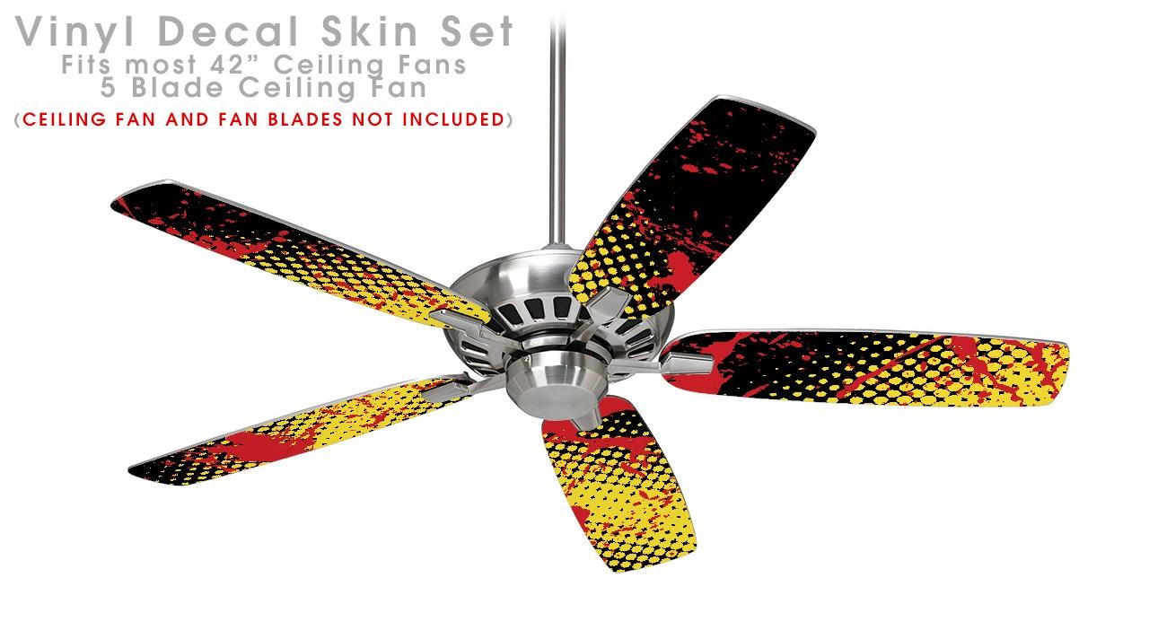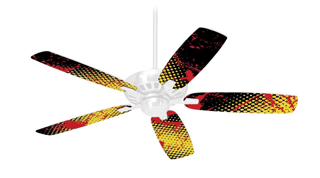 Halftone Splatter Yellow Red - Ceiling Fan Skin Kit fits most 42 inch fans (FAN and BLADES SOLD SEPARATELY)