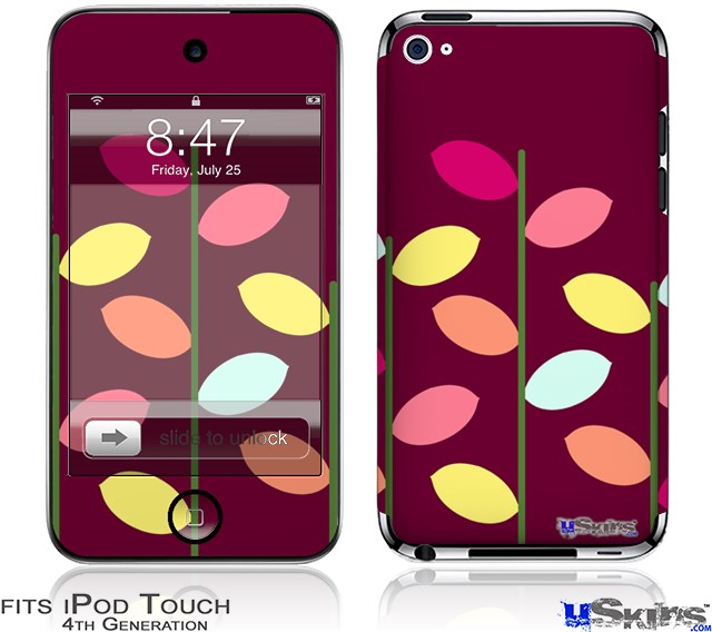 iPod Touch 4G Decal Style Vinyl Skin - Plain Leaves On Burgundy