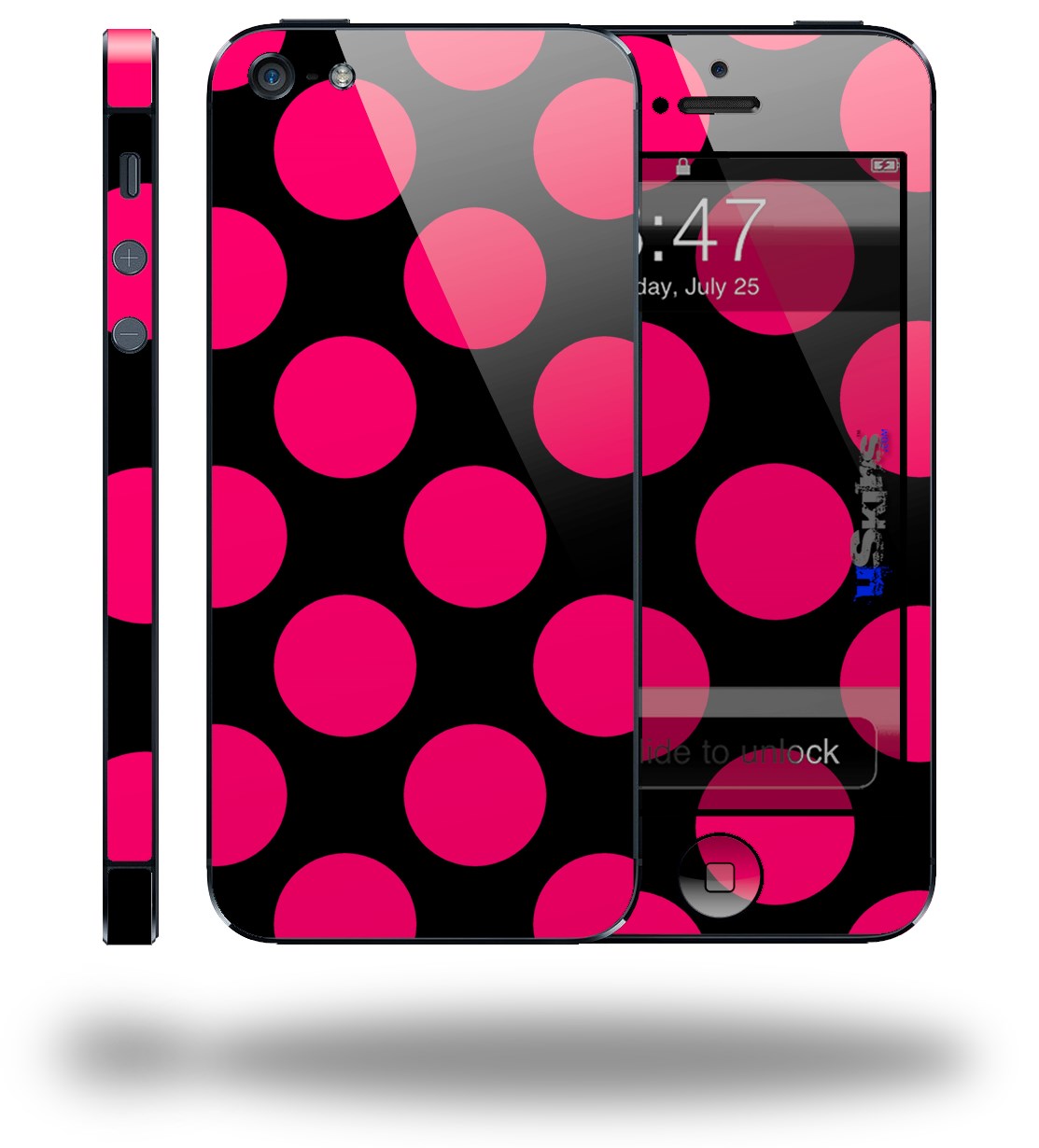 Kearas Polka Dots Pink On Black - Decal Style Vinyl Skin (fits Apple Original iPhone 5, NOT the iPhone 5C or 5S)