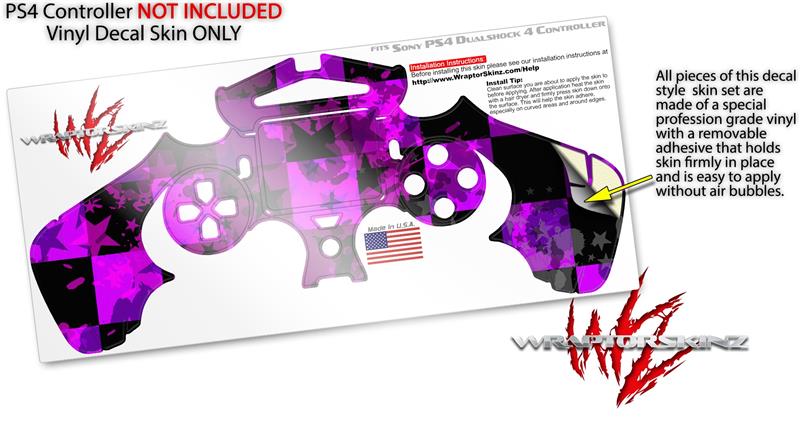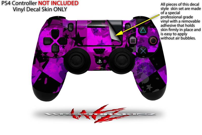 WraptorSkinz Skin compatible with Sony PS4 Dualshock Controller PlayStation 4 Original Slim and Pro Purple Star Checkerboard (CONTROLLER NOT INCLUDED)