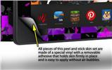 uSkins™ are self adhering vinyl skins that help prevent scratches and look great doing it. Unlike bulky silicon and plastic covers, uSkins are designed to be thin and very tough. uSkins are a composite of two layers of commercial grade materials. The bottom layer is a soft, flexible vinyl with a special removable adhesive that is easily positioned and applied without air bubbles. The bottom layer print with special UV protected, fade resistant inks that deliver superb photo quality designs in vibrant colors. Finally we bond a professional grade laminate over the entire skin adding a glossy protective finish.