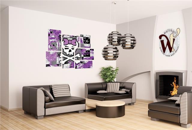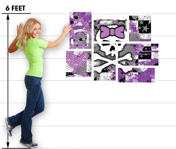 Princess Skull Purple - 7 Piece Fabric Peel and Stick Wall Skin Art (50x38 inches)