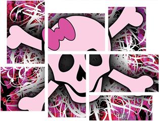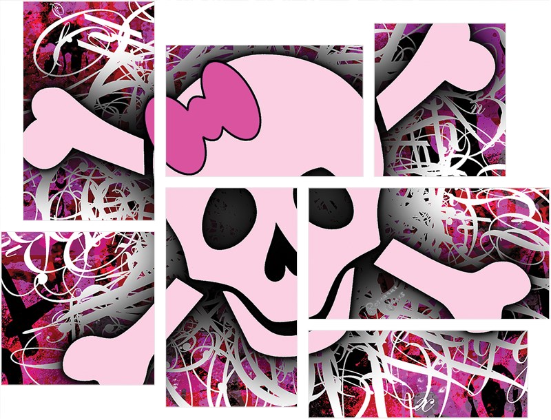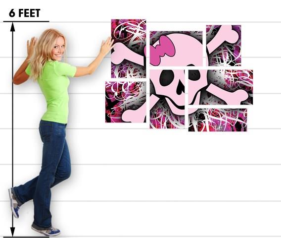 Pink Skull - 7 Piece Fabric Peel and Stick Wall Skin Art (50x38 inches)