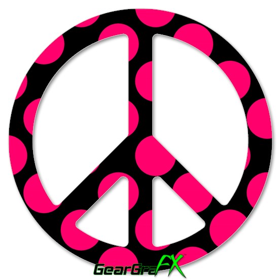 Kearas Polka Dots Pink On Black - Peace Sign Car Window Decal 6 x 6 inches