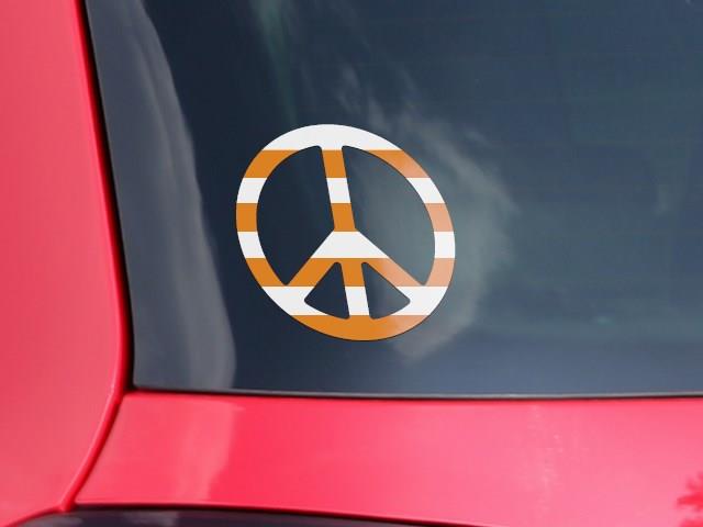 Psycho Stripes Orange and White - Peace Sign Car Window Decal 6 x 6 inches