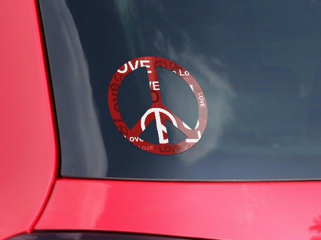 Love and Peace Red - Peace Sign Car Window Decal 6 x 6 inches