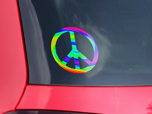 Rainbow Swirl - Peace Sign Car Window Decal 6 x 6 inches