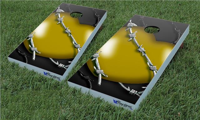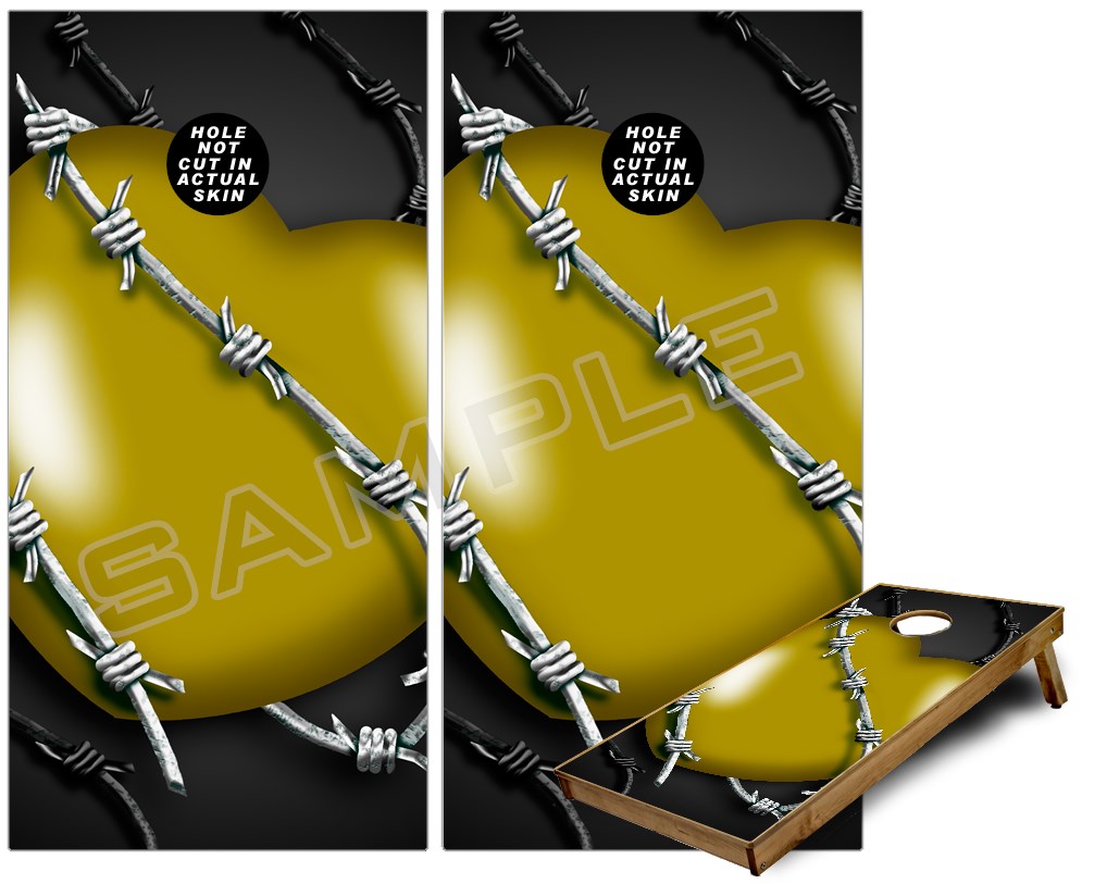 Cornhole Game Board Vinyl Skin Wrap Kit - Barbwire Heart Yellow fits 24x48 game boards (GAMEBOARDS NOT INCLUDED)