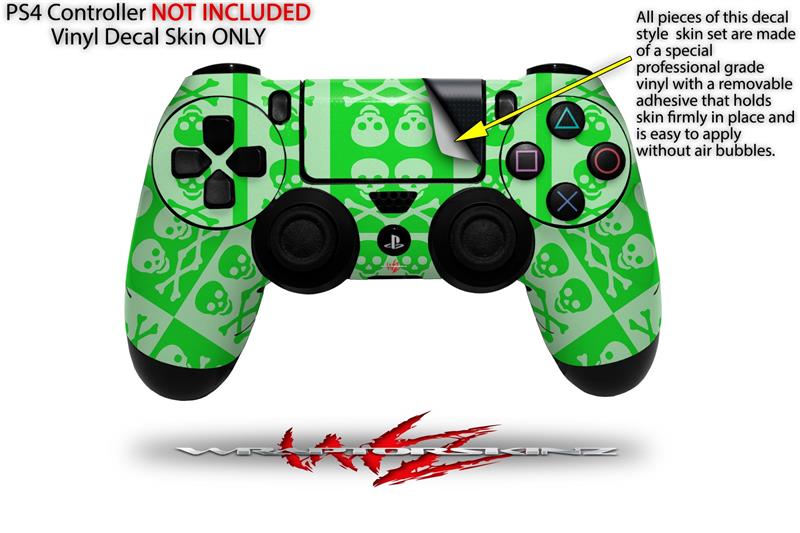 WraptorSkinz Skin compatible with Sony PS4 Dualshock Controller PlayStation 4 Original Slim and Pro Skull And Crossbones Pattern Green (CONTROLLER NOT INCLUDED)