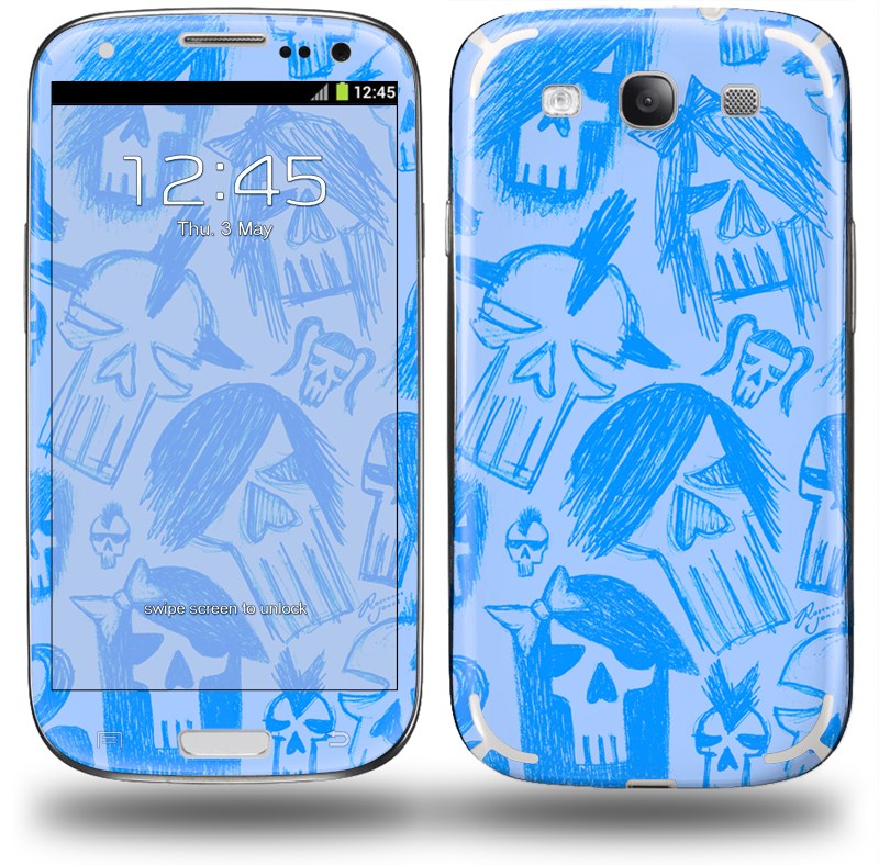 Skull Sketches Blue - Decal Style Skin (fits Samsung Galaxy S III S3)