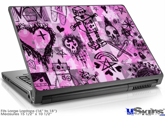 Laptop Skin (Large) - Scene Kid Sketches Pink