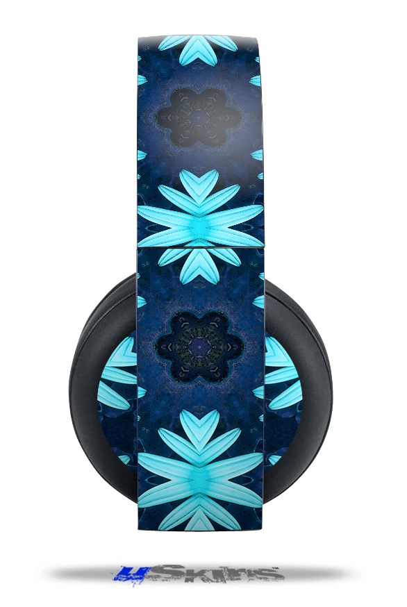 Vinyl Decal Skin Wrap compatible with Original Sony PlayStation 4 Gold Wireless Headphones Abstract Floral Blue (PS4 HEADPHONES NOT INCLUDED)