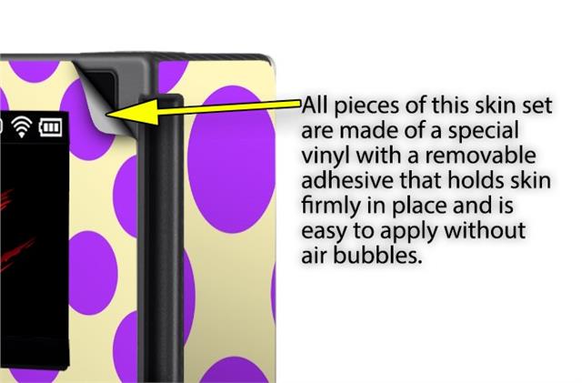 WraptoSkinz™ skins are superb photo quality designs and vibrant colors printed with special Eco-Friendly, fade resistant inks. Our skins are self-adhering flexible vinyl skins that helps prevent scratches. Made of composite, multi-layered commercial grade materials. The bottom layer is made with a special removable adhesive that is easily positioned and applied without air bubbles. We print your design on the bottom layer then bond a professional grade laminate over the entire skin adding a glossy protective finish.