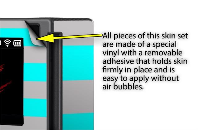 WraptoSkinz™ skins are superb photo quality designs and vibrant colors printed with special Eco-Friendly, fade resistant inks. Our skins are self-adhering flexible vinyl skins that helps prevent scratches. Made of composite, multi-layered commercial grade materials. The bottom layer is made with a special removable adhesive that is easily positioned and applied without air bubbles. We print your design on the bottom layer then bond a professional grade laminate over the entire skin adding a glossy protective finish.