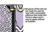 WraptoSkinz™ skins are superb photo quality designs and vibrant colors printed with special Eco-Friendly, fade resistant inks. Our skins are self-adhering flexible vinyl skins that helps prevent scratches. Made of composite, multi-layered commercial grade materials. The bottom layer is made with a special removable adhesive that is easily positioned and applied without air bubbles. We print your design on the bottom layer then bond a professional grade laminate over the entire skin adding a glossy protective finish.