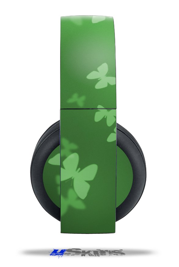 Vinyl Decal Skin Wrap compatible with Original Sony PlayStation 4 Gold Wireless Headphones Bokeh Butterflies Green (PS4 HEADPHONES NOT INCLUDED)