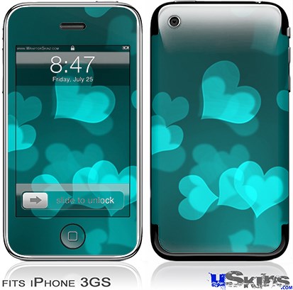 iPhone 3GS Skin - Bokeh Hearts Neon Teal