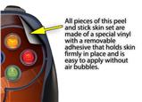 uSkins™ are self adhering vinyl skins that help prevent scratches and look great doing it. Unlike bulky silicon and plastic covers, uSkins are designed to be thin and very tough. uSkins are a composite of two layers of commercial grade materials. The bottom layer is a soft, flexible vinyl with a special removable adhesive that is easily positioned and applied without air bubbles. The bottom layer print with special UV protected, fade resistant inks that deliver superb photo quality designs in vibrant colors. Finally we bond a professional grade laminate over the entire skin adding a glossy protective finish.