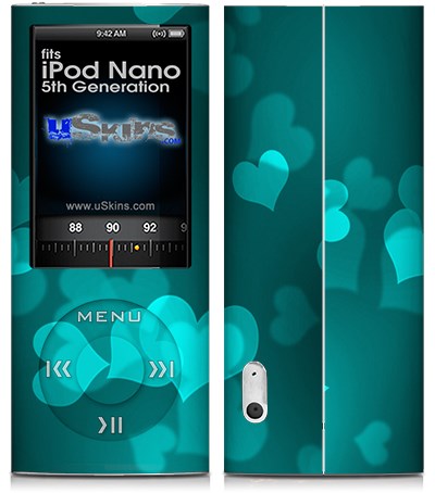 iPod Nano 5G Skin - Bokeh Hearts Neon Teal