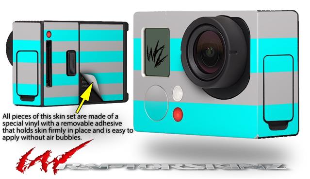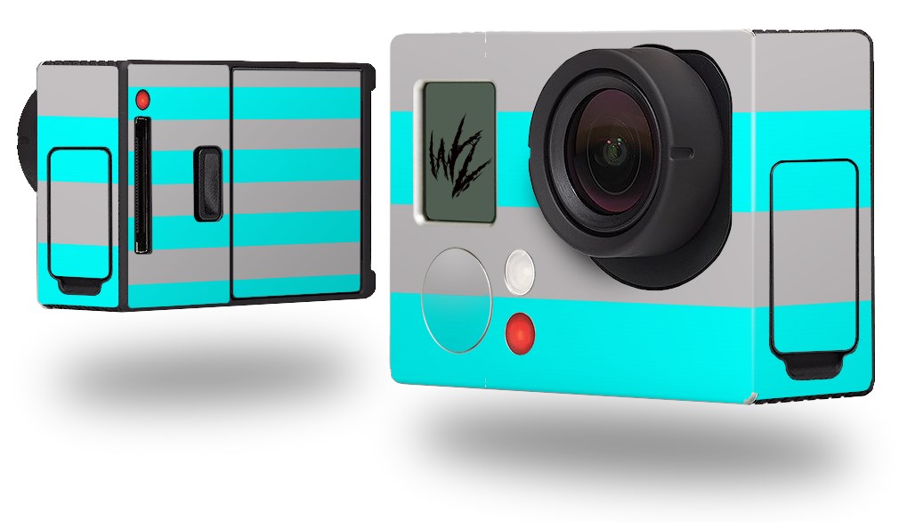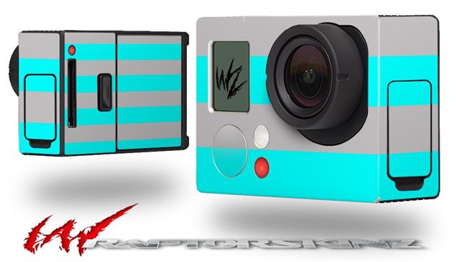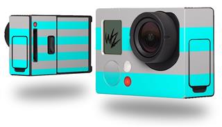 Psycho Stripes Neon Teal and Gray - Decal Style Skin fits GoPro Hero 3+ Camera (GOPRO NOT INCLUDED)