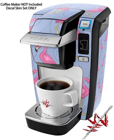 Decal Style Vinyl Skin compatible with Keurig K10 / K15 Mini Plus Coffee Makers Flamingos on Blue (KEURIG NOT INCLUDED)
