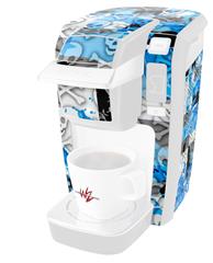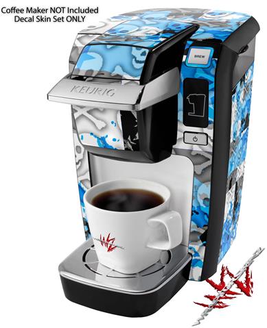 Decal Style Vinyl Skin compatible with Keurig K10 / K15 Mini Plus Coffee Makers Checker Skull Splatter Blue (KEURIG NOT INCLUDED)