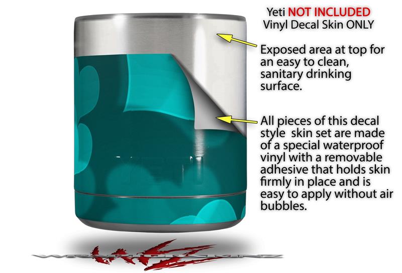 Skin Decal Wrap for Yeti Rambler Lowball - Bokeh Hearts Neon Teal