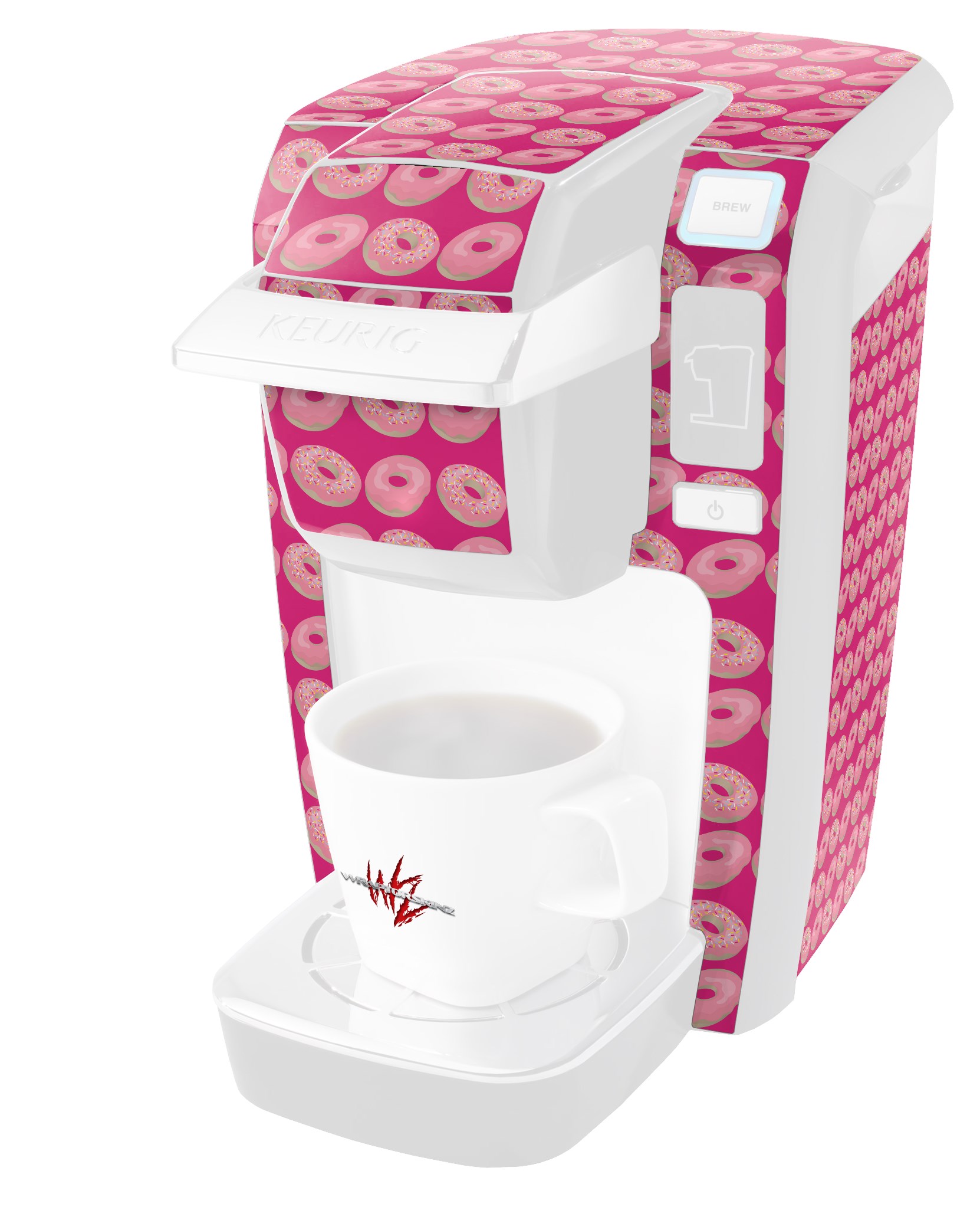 Decal Style Vinyl Skin compatible with Keurig K10 / K15 Mini Plus Coffee Makers Donuts Hot Pink Fuchsia (KEURIG NOT INCLUDED)