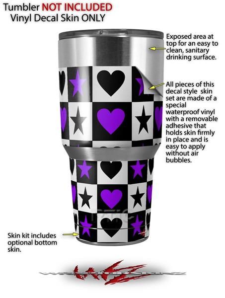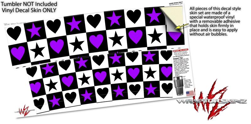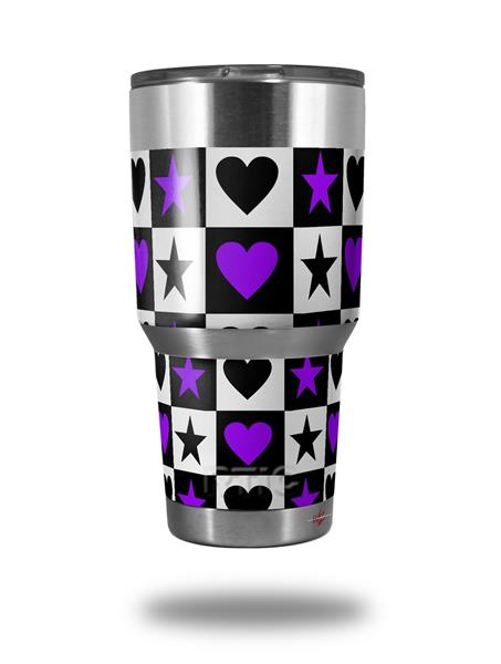 WraptorSkinz Skin Wrap compatible with RTIC 30oz ORIGINAL 2017 AND OLDER Tumblers Purple Hearts And Stars (TUMBLER NOT INCLUDED)