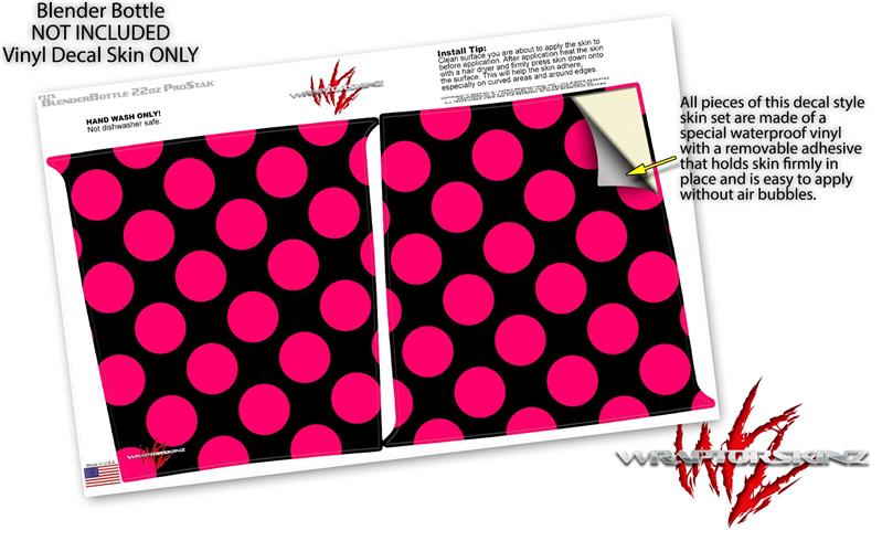 Decal Style Skin Wrap works with Blender Bottle 22oz ProStak Kearas Polka Dots Pink On Black (BOTTLE NOT INCLUDED)