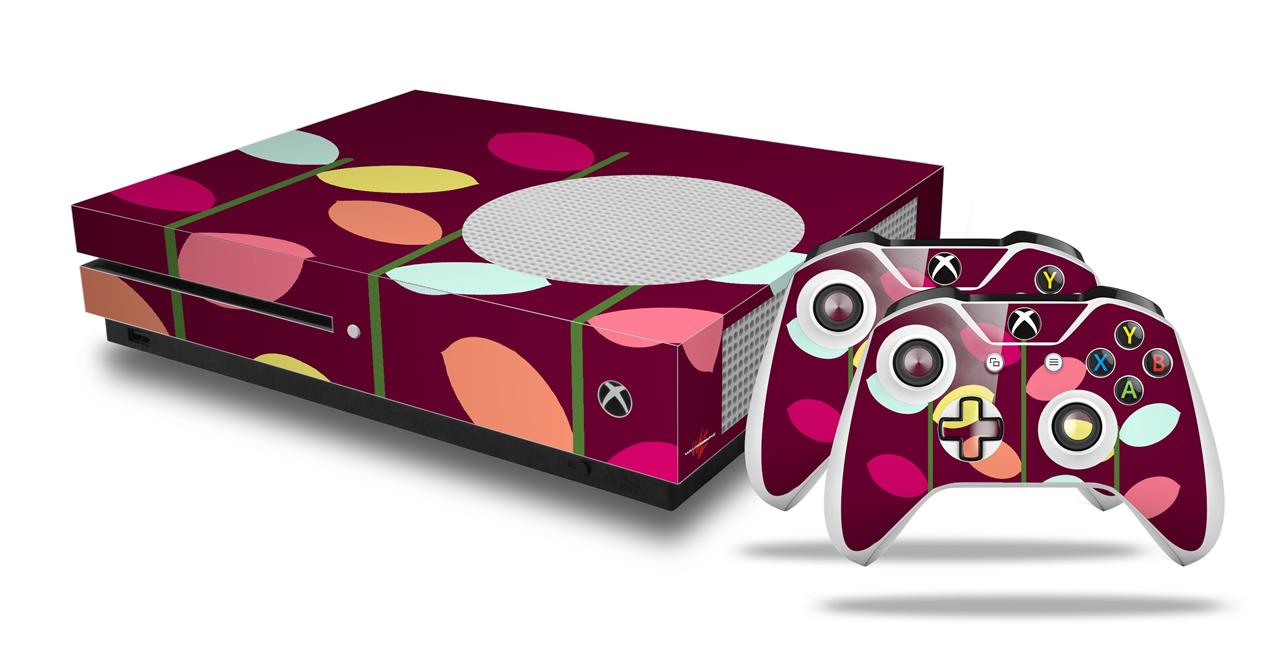 WraptorSkinz Decal Skin Wrap Set works with 2016 and newer XBOX One S Console and 2 Controllers Plain Leaves On Burgundy