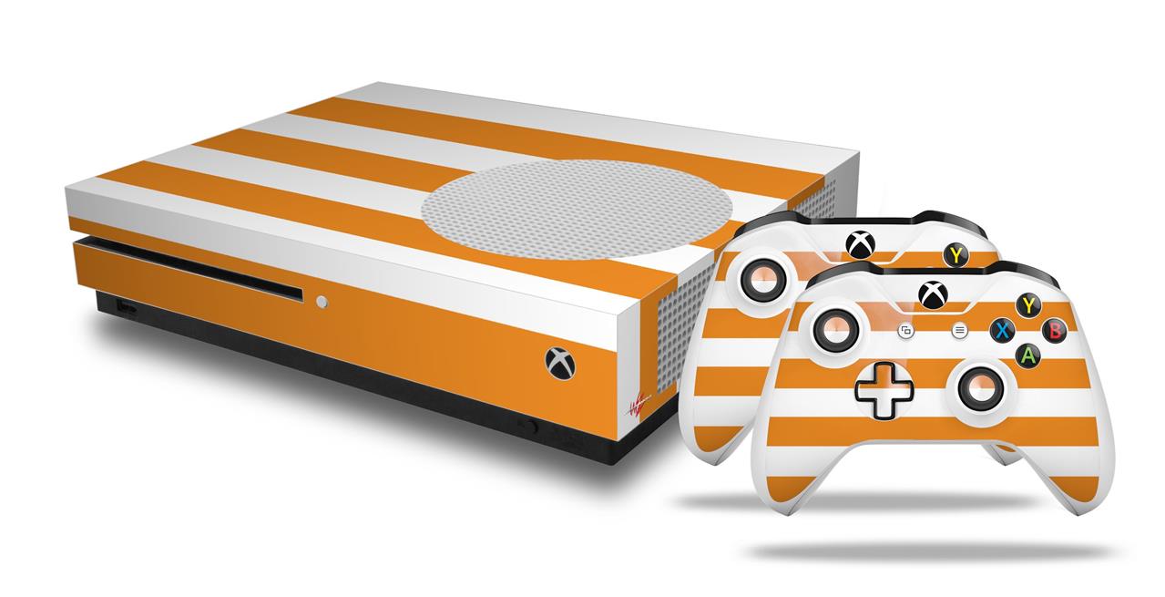 WraptorSkinz Decal Skin Wrap Set works with 2016 and newer XBOX One S Console and 2 Controllers Psycho Stripes Orange and White