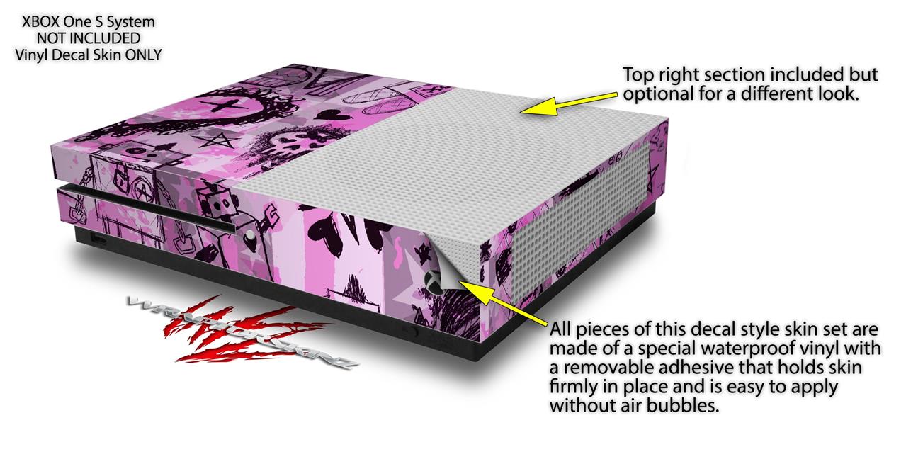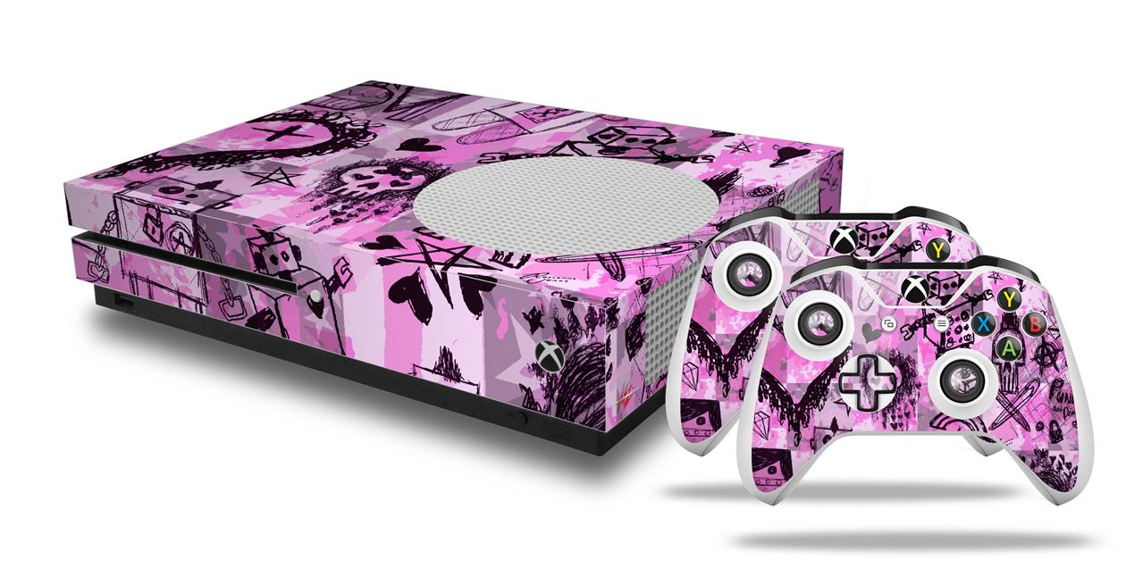 WraptorSkinz Decal Skin Wrap Set works with 2016 and newer XBOX One S Console and 2 Controllers Scene Kid Sketches Pink