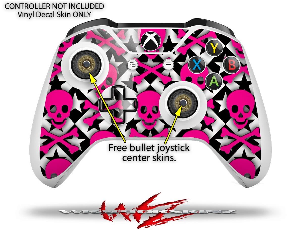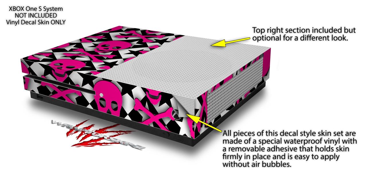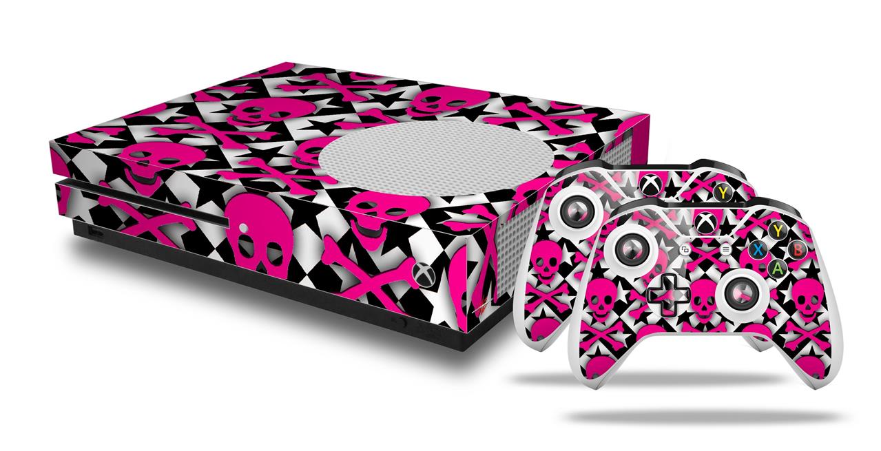 WraptorSkinz Decal Skin Wrap Set works with 2016 and newer XBOX One S Console and 2 Controllers Pink Skulls and Stars
