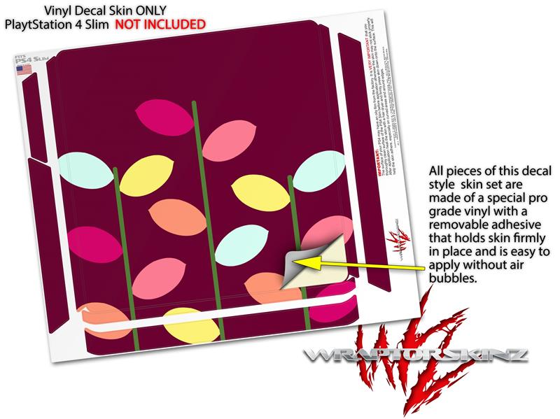 Vinyl Decal Skin Wrap compatible with Sony PlayStation 4 Slim Console Plain Leaves On Burgundy (PS4 NOT INCLUDED)