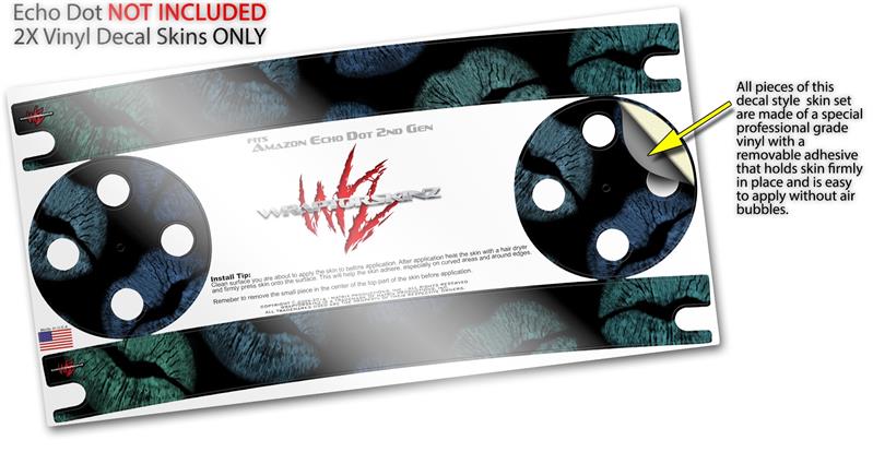 Skin Wrap Decal Set 2 Pack for Amazon Echo Dot 2 - Blue Green And Black Lips (2nd Generation ONLY - Echo NOT INCLUDED)